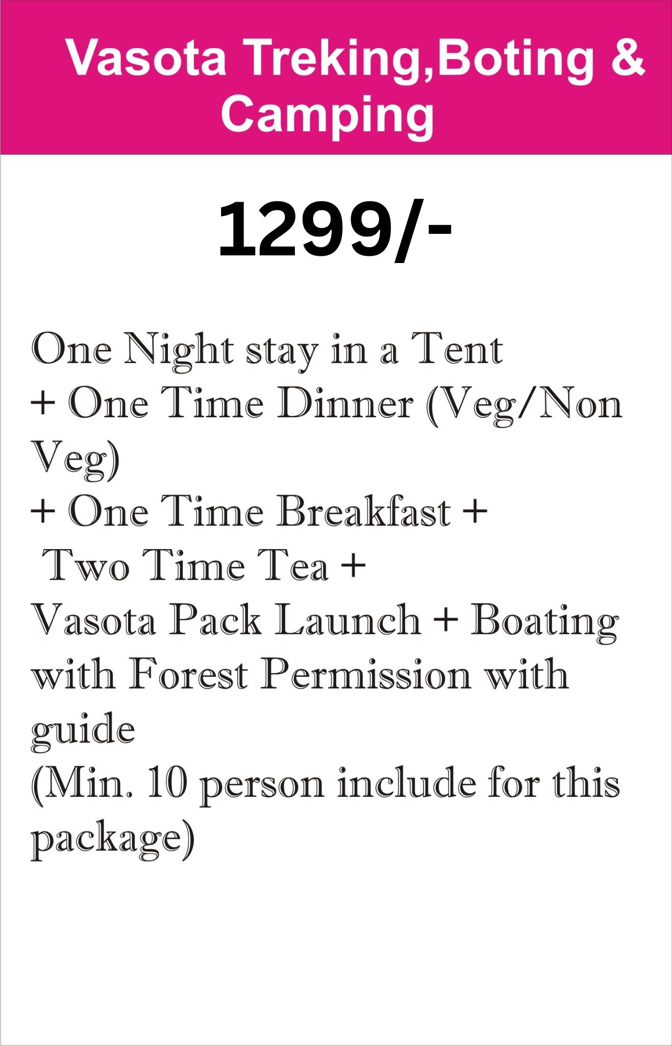 Lets Wonder near Water, Catch the fish or order fresh fish from local peoples , Fry it and eat it, Wonder around the green mountains, play indoor games and outdoor games, go for trekking in mountains, play adventure games, See the ducks, cows…..take rest in tents…Visit the Island in water whats more to have wonderful weekend at nominal charges…